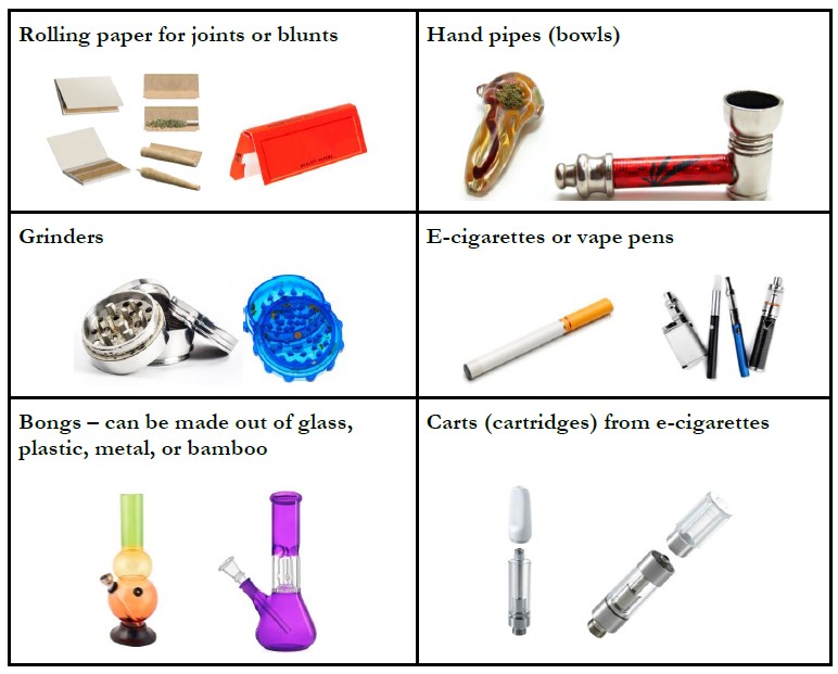 - Vape pens: a handheld device that looks like an ink pen or USB drive that is used for vaping. It turns marijuana oil into a vapor that can be smoked.