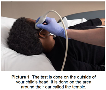 - They will move a small device, called a probe, over the sides of your child’s head and forehead (Picture 2).