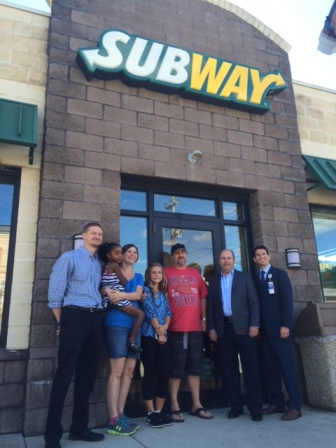 Nationwide Children’s Hospital Patient Champions Brielle and Melanie with their parents and representatives from Subway and Nationwide Children’s Hospital Foundation.